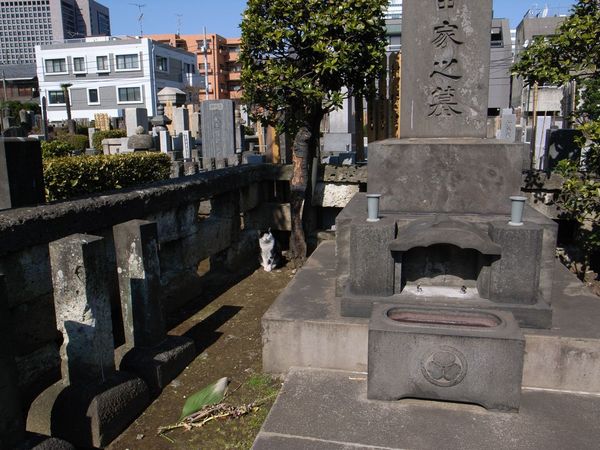 墓の猫 死者と生者に やしなわれ