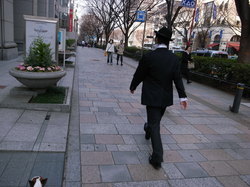 ひとりで微笑みながら歩く。