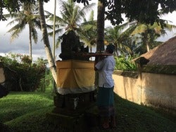 お供えのお花を取り替えてる人と、