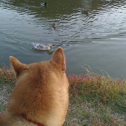 水に浮かぶトリを見て。
