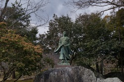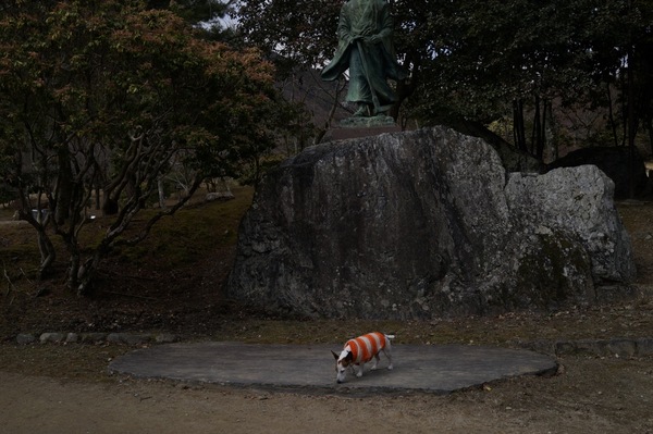 「角倉了以像」の前に。