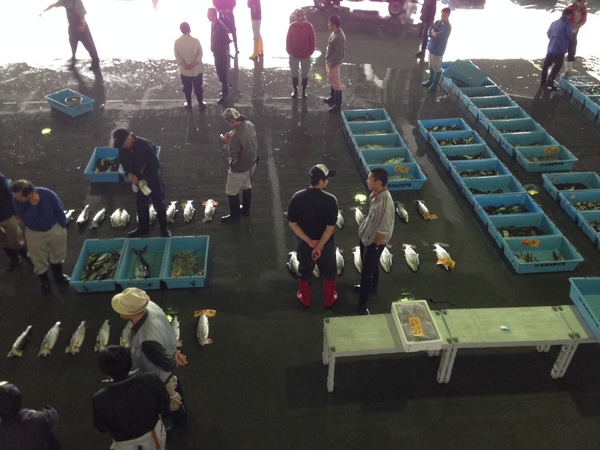 魚市場を見学しています。