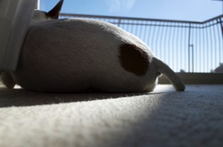 犬が洗濯ものといっしょに、