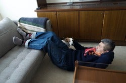 犬がそばにいると、なでてくれます。