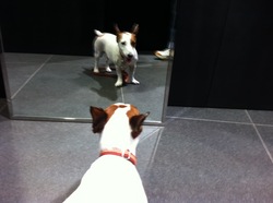 かがみを見たりして遊んでました。