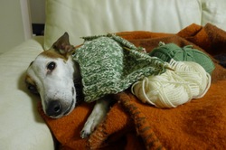 憧れていた「犬の服」を編んでいます。