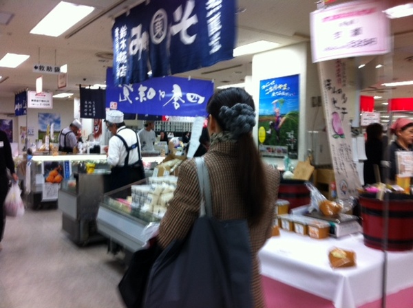 デパートにいるふたり組です。8階で福島物産展が、開かれているもよう。行ってみました。チョーたのしい。チョーおいしそう。