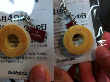 渋谷のデパート闊歩中のりんりんとスガノです。我々は、この限定販売のバウムクーヘンストラップつきのバウムクーヘンが、どーーーしても、欲しかったのであります。ストラップがすでにおいしそうであります!今日のサボりの最後にみんなで食べよう!ストラップを!じゃなくて、バウムクーヘン本体を!