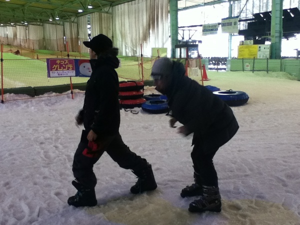 到着。けっきょく、ぼくをふびんに思ったとみちゃんが同行してくれました。貸しぐつ!燃える! いざ!