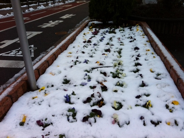 青山ブックセンターでワインの本を購入。この前、お友達の家にあって欲しくなったんです。って、そんなことはさておき会社に戻る途中、雪に覆われたパンジーたちを発見。キノシタ「ねぇねぇ。きょうね。仕事サボってたんだー。」パンジー「あたしたち、そういうことよくわかんない。」キノシタ「え!そうなの?四年に一度、やるといいよ。」パンジー「そう。ねぇ、この雪、どう思う?」キノシタ「すごいよね。寒くないの?」パンジー「寒いよ。でも、寒いことがわかんないと暖かいこともわかんないからさー。」じゃ、またいつかー!