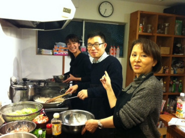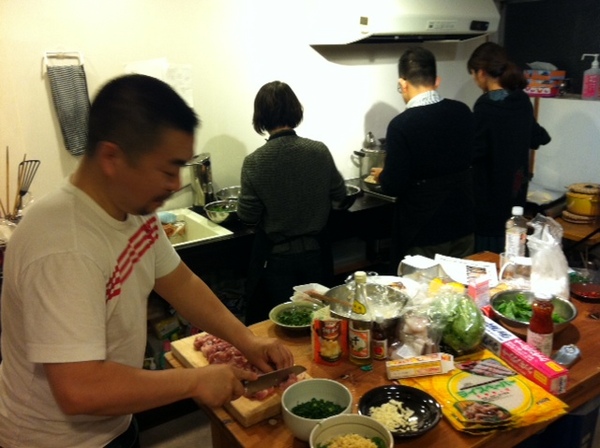 会社まで戻ってくるといいにおい。キッチンへ行ってみると武井、りか、ベイ、加納が料理をしていました。さぼってる時間に料理をつくり、さぼってる人たちが帰ってきたら、さぼってた者同士でいただく。脂っこいものも、ちゃーんとあるようです!あ、宇宙部ベイちゃん、髪切って来たね?