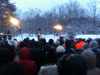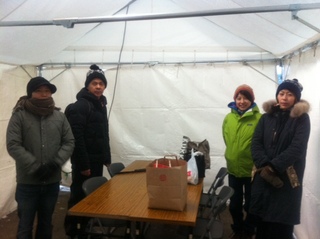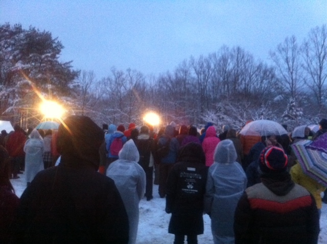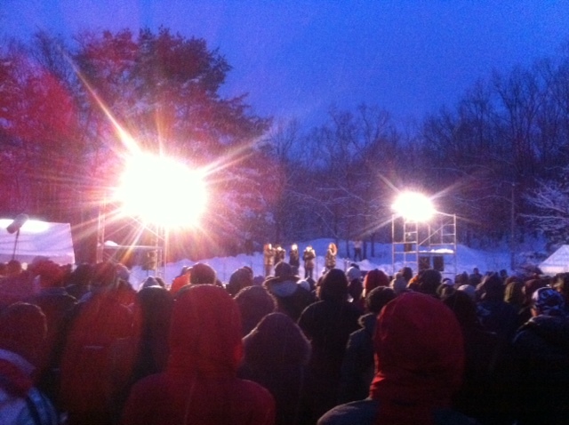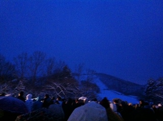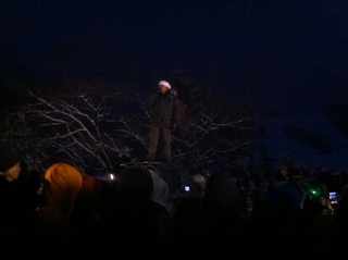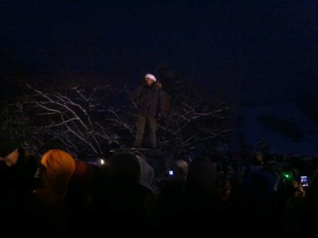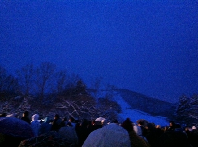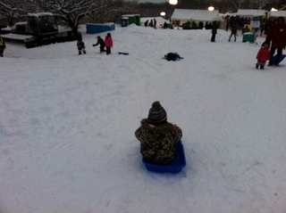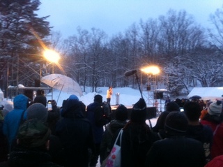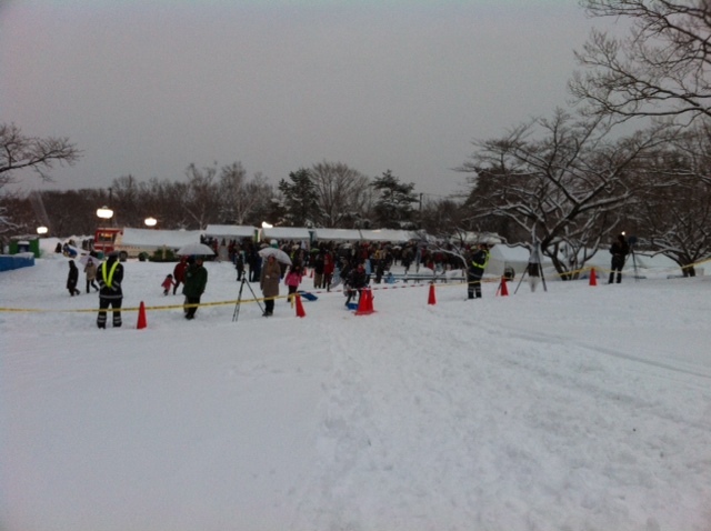 あたりはだんだん暗くなってきました。 子どもさんたちが そりで遊んでいてかわいい。 Ustream配信中ですが、 いま無音状態です。 |