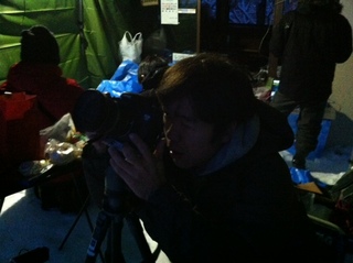 日が暮れて、 急激に冷えてきました。 しんとした気持ちです。 花火をとらえる スチールカメラ担当は ほぼ日の田口です。