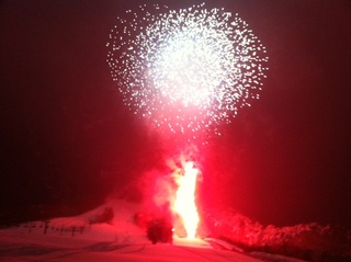 Ustream画面では、 18時10分から 音声と画面を切り替えて、 団長のコメントを放映し、 そのまま花火打ち上げ開始です。 |