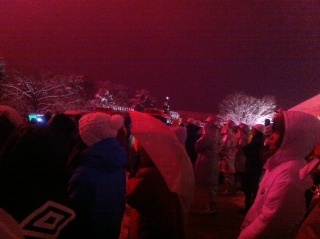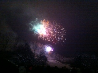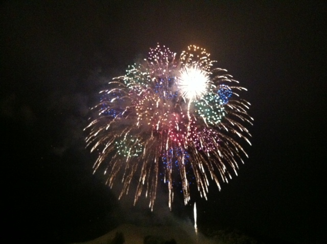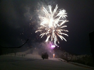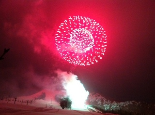 花火の明かりに照らされて、 真っ暗なはずの現場のスキー場が 昼間のように明るくなる瞬間があります。 |