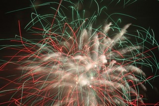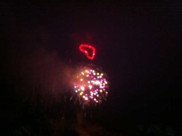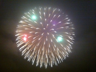 伝統的な花火にまじって ニコニコ顔の花火や ハート型の花火も打ち上がります。