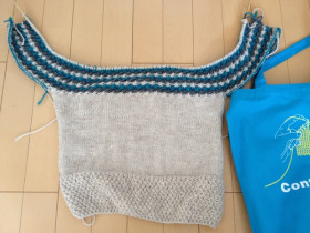 まだこれはセーターの半面なので、