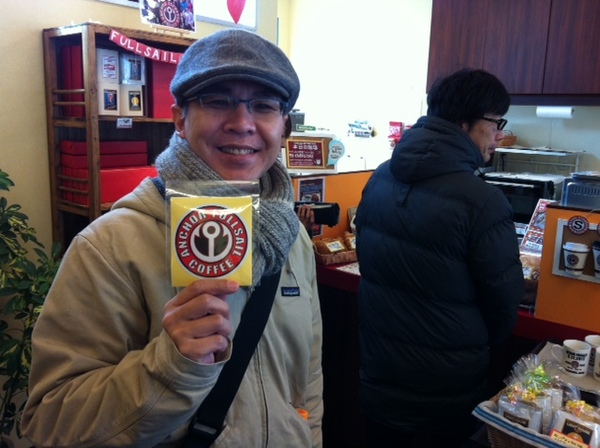 一ノ関から気仙沼に向かう途中、 アンカーコーヒー川崎店に寄りました。 山下がうれしそう。 テイクアウトで車内に持ち込み、 引き続き気仙沼へ。 |