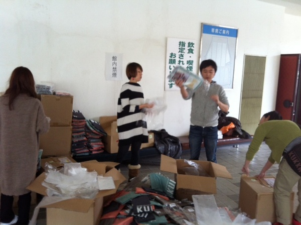 ホテル観洋さんに、 舞台で使うびょうぶを借りにきました。 現地のみなさんが 力をあわせてこのイベントのために。