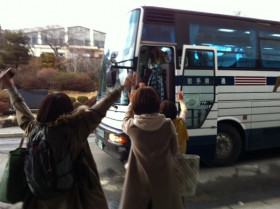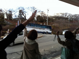 カレイコースに同行していた スガノとタナカが みなさんをホテルに送り届け 会場にやってきました。 なんだかものすごく感動してるよ? そんなにいつまでも手を振り続けて。 たのしかったんだねー。 よかった! |