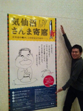 気仙沼プラザホテルに さんま寄席のポスターが 張ってありました! |