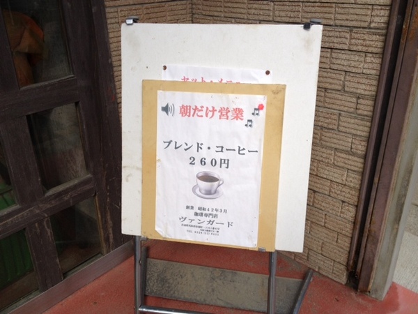 ヴァンガード。 たしかに、レトロ。 中にはグランドピアノがあって、 マスターのこだわりが、見えました。 いまは朝だけ営業中みたいです。 地元の顔見知りのおじさんたちが、 おはよう、おはよう、と 同じテーブルにどんどん集まってきます。 マスターに聞いてみたら、 今日は定休日だけど、 このおじさんたちのために、開けたの。って。 どうりで、ぞくぞくと集まるわけだ。 明日も朝七じ半からやってるそうです。 おいしかったです。 ごちそうさまでした。 |