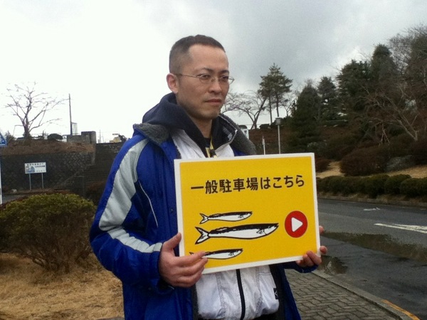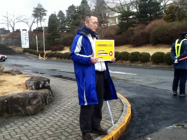 お車でいらしたかたは この大きな看板の誘導に従って 駐車場へお進み下さいませ。 |