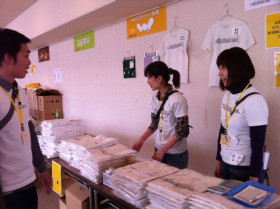 ふだん「ほぼ日」が お世話になっている方々も、 今日はお客さまとして たくさん参加してくださっています。 福田画伯は この薄着で、本日MAXだそうです。 ブルータスのみなさんは、 お弁当をたのしみに なさっていました。 |