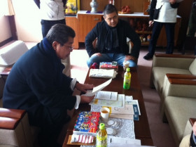 志の輔さんを交えて 最後の打ち合わせです。 ここはさすがに、 全員がぴりっとします。 いよいよですね。 |