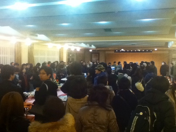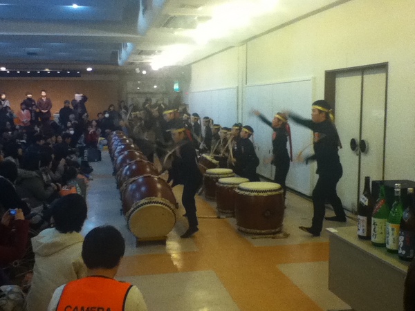 こちら、市民会館中ホールの 打ち上げ会場では 気仙沼の子供たちによる 元気いっぱいの 太鼓の演奏が始まりました! |