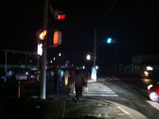 サメ2号、 とっぷりと暮れた気仙沼を 打ち上げ会場に向かって移動中。 |