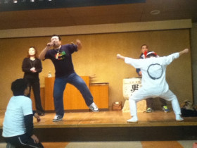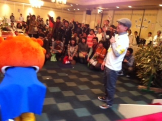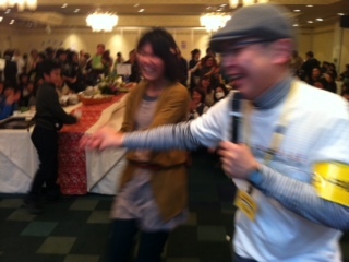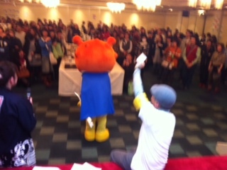 ハチマキをしめた斉藤さんの おもしろさも相まって 会場のみなさん、大盛り上がり。 |