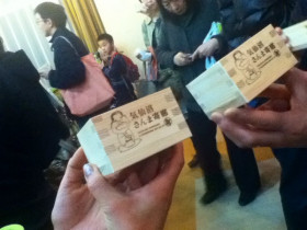 気仙沼のお酒は このような 特別な「ます」に注がれて 振る舞われました。