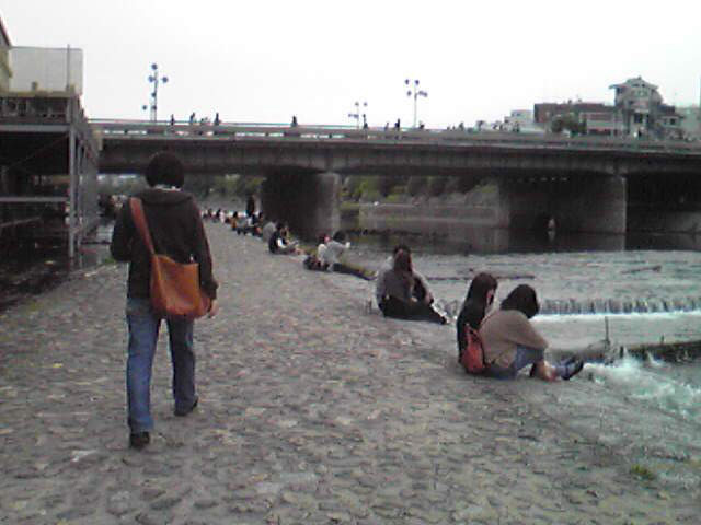 さすが鴨川!カップル多し!!その脇を颯爽と歩くやえ姉さん。