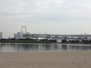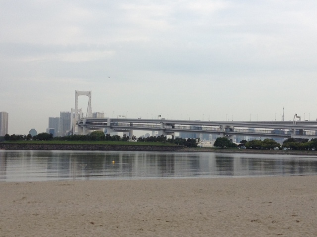 お台場に到着しました。薄曇り、まさしくそんな天気です。過ごしやすい気候である、とも言えます。ちょっと小雨も落ちている??気のせい、気のせい。