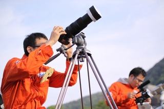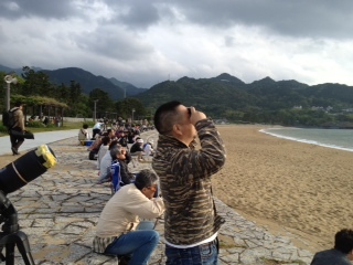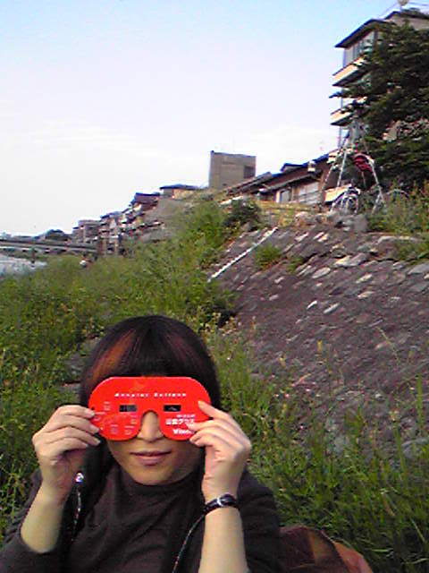 こちら和歌山、雲の切れ目から太陽が!みんな一斉にメガネをつけた!