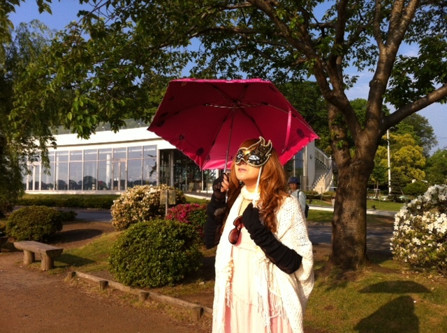 小雨がぱらついてます。ときどき太陽が見え隠れしています。近所のかたなどがたくさん見にきてますねー