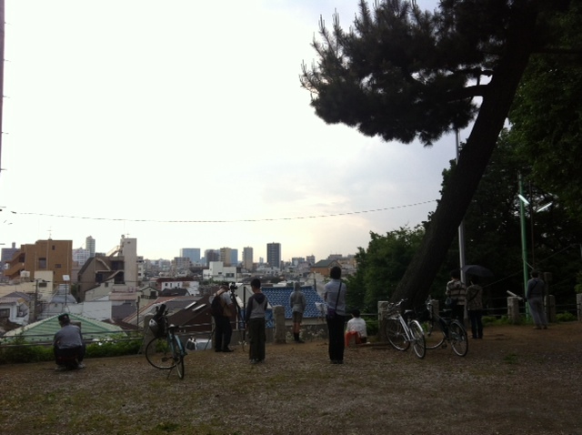 鴨川沿いに、金環日食を見に、ぞくぞくと人が集まっていました。カメラをセットしている人もちらほら。やえ「鴨川沿いに カップル以外の人が‥‥!」京都のみなさん、鴨川はナイススポットですよ!ただ、まだ雲がかかっています。