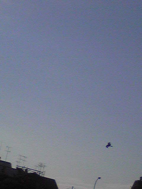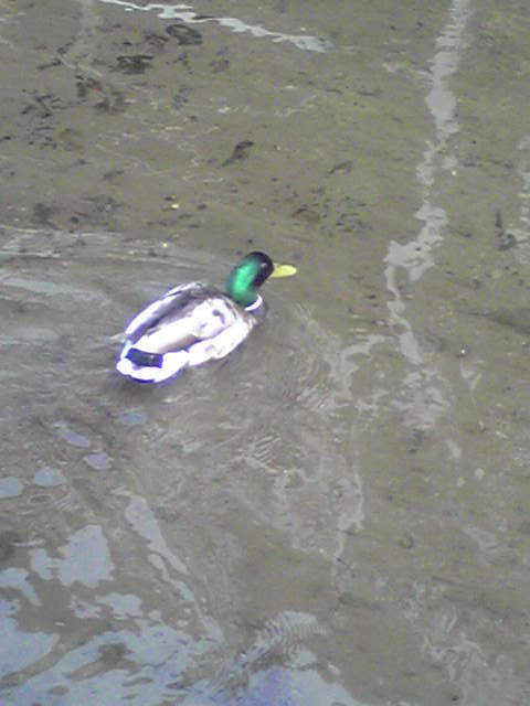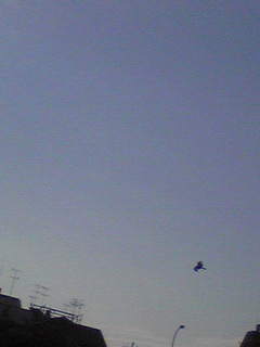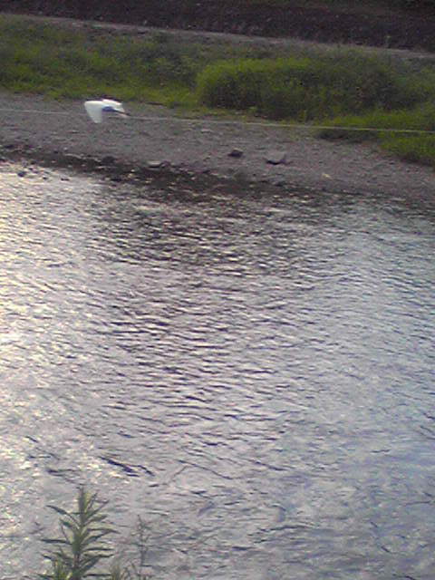 ピューヒューロロロ‥‥上を見ると、トンビ(たぶん)が!白くてでかい鳥もいます!これは‥‥鴨、かも?