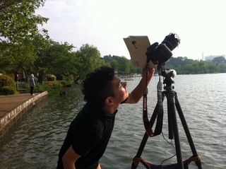 昨日、ロケハンしていた場所に着きました。でも、雲が太陽をかくしているー!むむー、あの雲、どこかにいかないかな。早朝にもかかわらず、意外と人がたくさんいます。