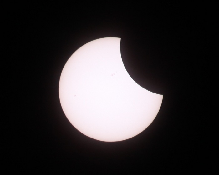 こちら福島・星の村天文台。このように、けっこう欠けてきましたよ!たのしい! 日食すごい!