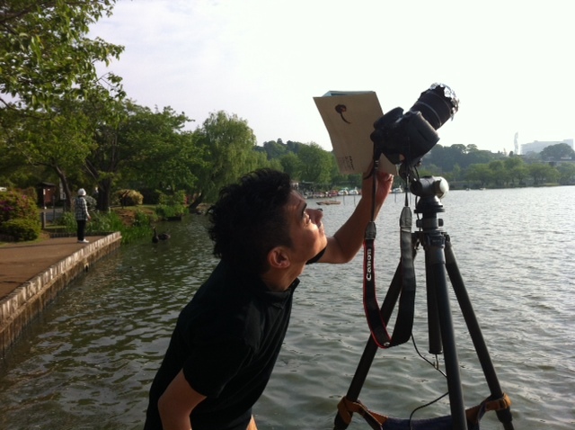 ヒロセさん、自動シャッターがうまく動作してることを確認。あとで見て見るのが楽しみー。