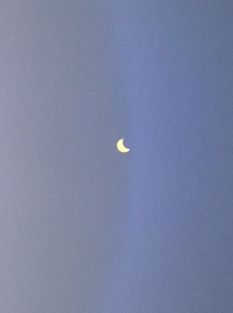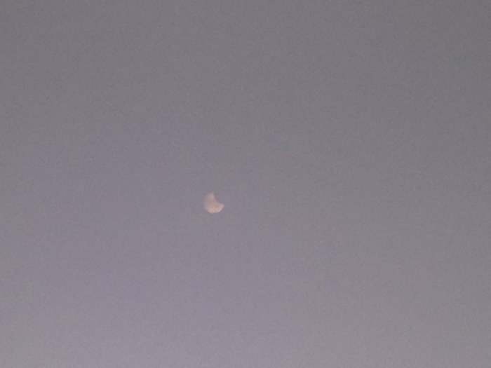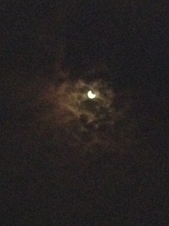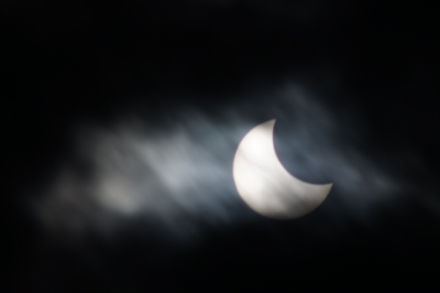 お、おおおー!雲の切れ間から、見えました!欠けてる!周りからも、歓声があがってます。