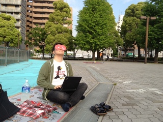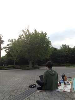 カワモトです。江東区は木場公園に陣取っております。これではピクニックをしているようにしか見えませんね、、とりあえず欠け始めたのを一枚。