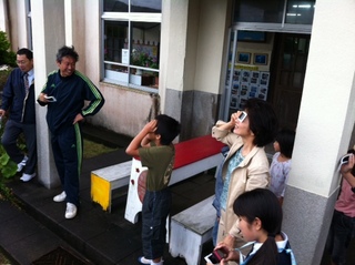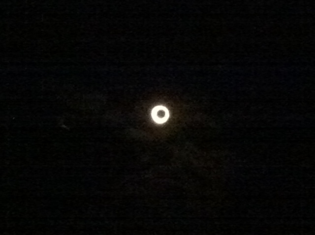 金環日食でございます。水戸も金環日食でございます。黄門様ありがとうございました!暗くはならないということでしたが、何となく光線の具合などがいつもと違う様子です。多少、不気味な感じがします。そして、湖面から吹いてくる風、冷たさマックス!わー!すごー。アイフォーンの限界で写真はイクラっぽいですが、ちゃんと輪になってる!