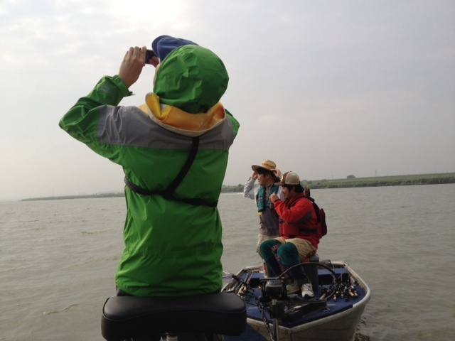 おともだちの釣り雑誌編集部の金さんと、ルアー職人の痴虫さんがやってきました。メガネをおすそ分けして、みんなで見ていました。輪ー!環ー!しげさんと、TKの姿は見えません。見てるかな?