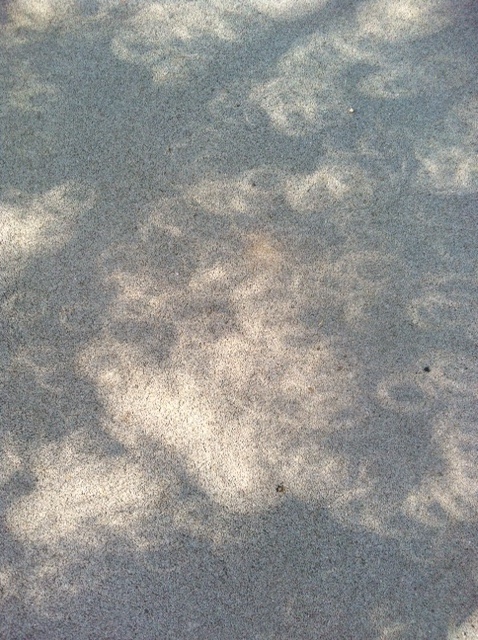 ふたたび木漏れ陽です。日蝕が金環になった時、地面にたっくさんの光の環が現れました。こんなの、もう一生見られないだろうなぁ‥‥。