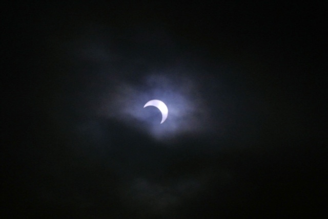 どうしても、影の感動をお伝えしたい!ってことで、さっきのリベンジ。見えますかー??ちょっと、三日月なんですよー。
