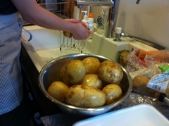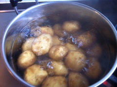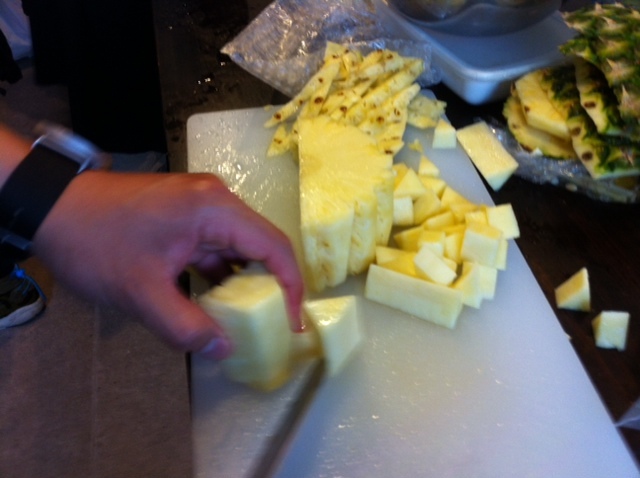 じゃがいもは茹で、パイナップルは一口大に。