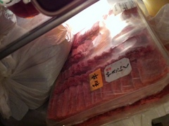 昨日のうちにしたごしらえがすんでます。 豚はタレにつけ、 鶏も下味をつけ、 牛は焼いてからつけだれで。